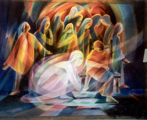 - Passionist: To share Jesus' body and blood, we must get up from the table, bend down and wash feet, taking off our garment of bias, judgment, pride, indignity, insecurity, power... Some garments will be harder to remove, but Jesus' body and blood give us the strength to remove them, bend down, gaze with love at others, and wash their feet. We may also discover we can let them wash our feet. Without the burden of the ‘cloak’ we can live in freedom, open to new life.